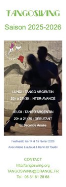 Stage TangoSwingLe week-end du 14 & 15 Février 2026Programme à venirAvec Ariane Liautaud & Karim El ToukhiDe Tango Art Compagnie